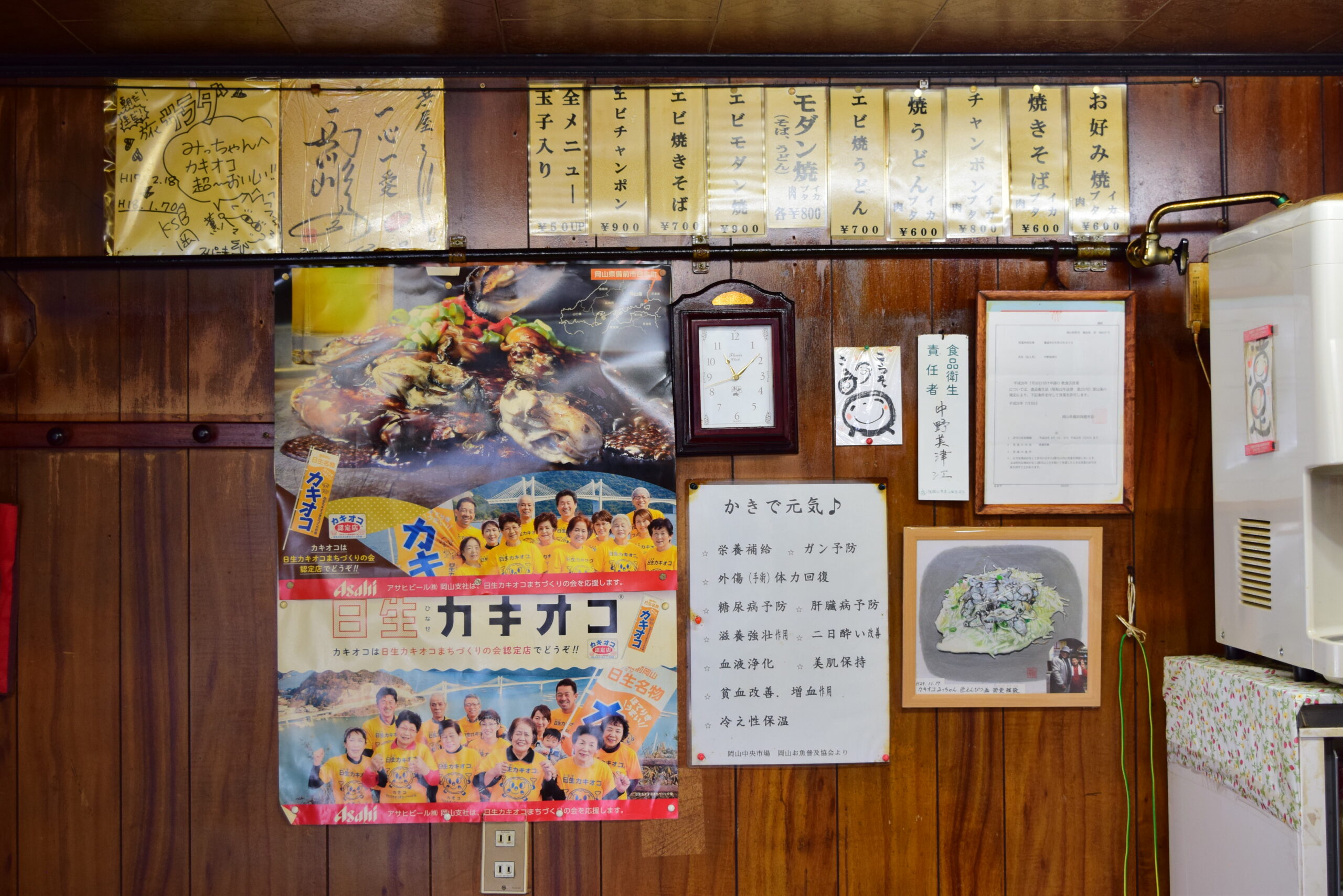 冬はもちろん日生のカキを使ったカキオコを、是非ご賞味下さい。みっちゃんのカキオコはボリュームが自慢です!