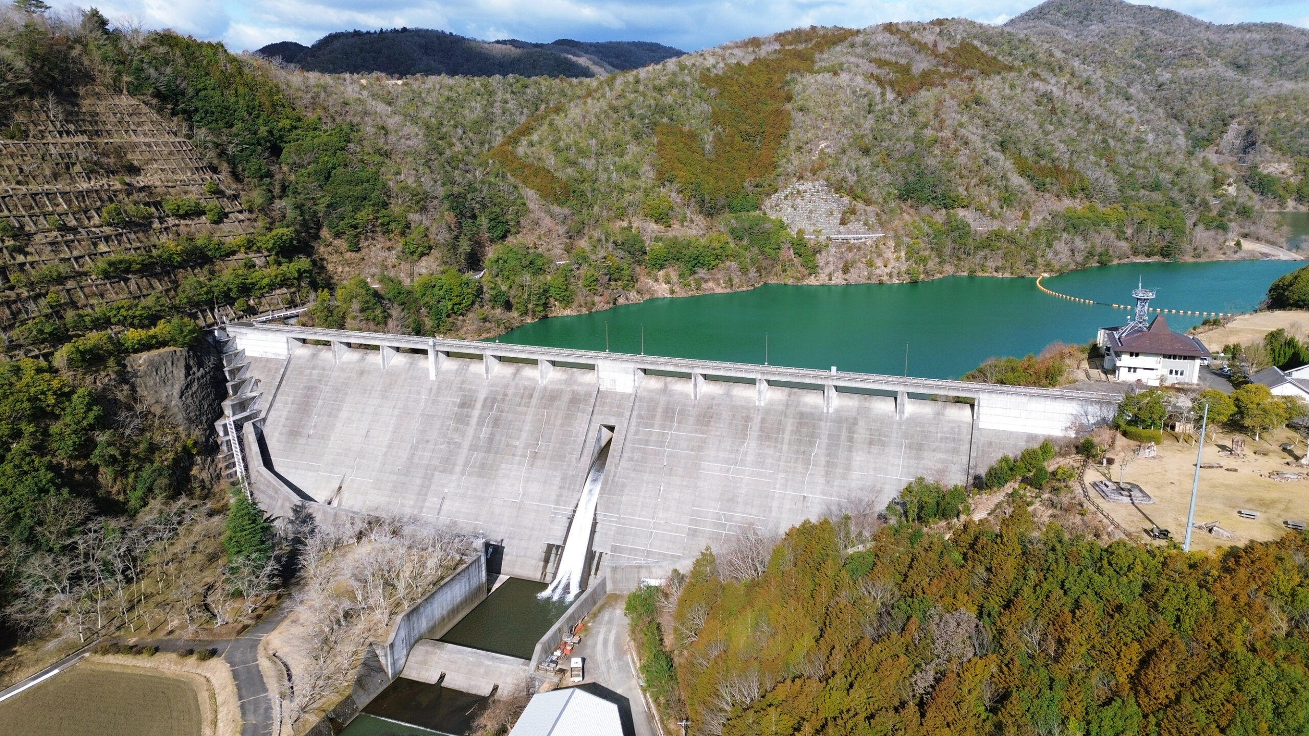 홍수 조절 수문에 자연 조절 방식을 채택한 다목적 댐. 지역의 안전한 생활을 지탱하고 있다. 사계절의 경관을 즐길 수 있는 것도 매력입니다.