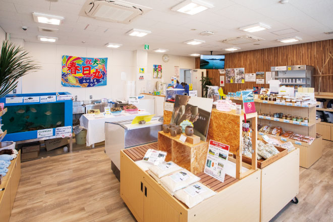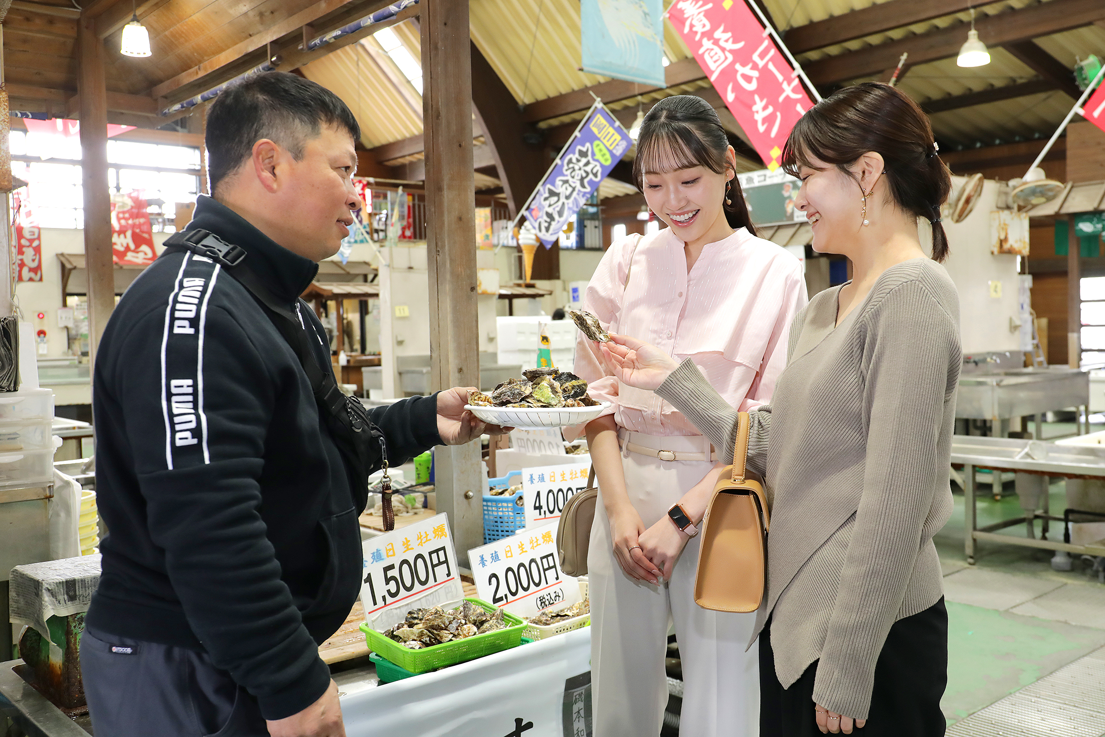 세토나이카이에서 어획된 신선한 해산물이 풍부하게 갖추어져 있으며, 이곳에서 구입한 물건은 맞은편에 있는 '우미노에키 시오지'에서 바비큐 OK! 조금 색다른 디저트인 '굴튀김 소프트'도 꼭 체크해 보자!