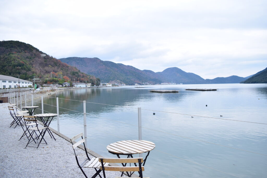 西海岸テイストの海が見えるカフェ。広々とした店内からは日生湾や備前♡日生大橋が見渡せます。