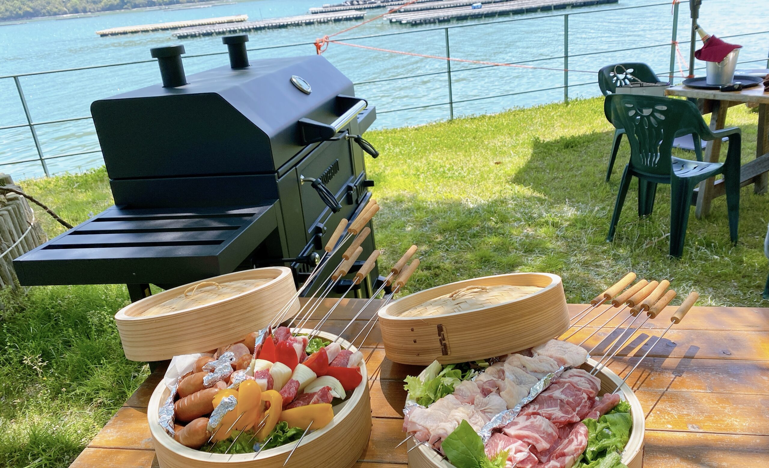 アルカディアヴィレッジは、海と山に囲まれたダイニング&バーです。併設している3本の桟橋には、40ftを超えるボートやヨットの係留ができ、クルージング中のお立ち寄りスポットとしてはもちろん、日生湾を目の前に行うBBQ、バータイムに不定期で開催するDJイベントやプロによる生演奏など、非日常の楽しさを存分に味わっていただける空間です。