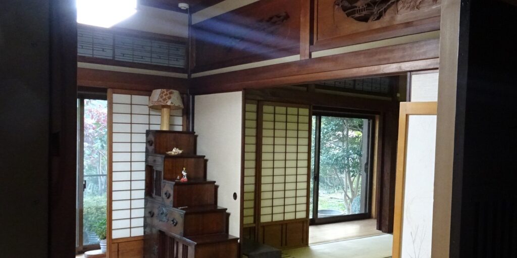 築90年の古民家は、昔の良さを残した改修で、太い梁など心地良い木の温もりを楽しめます。お部屋は広く、和紙あかりや和家具が備わり、庭を眺めながらゆったりとくつろぐことができます。