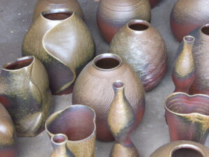 興楽園では、備前焼の湯呑みやお皿、花瓶や徳利などをメインに制作・販売しております。