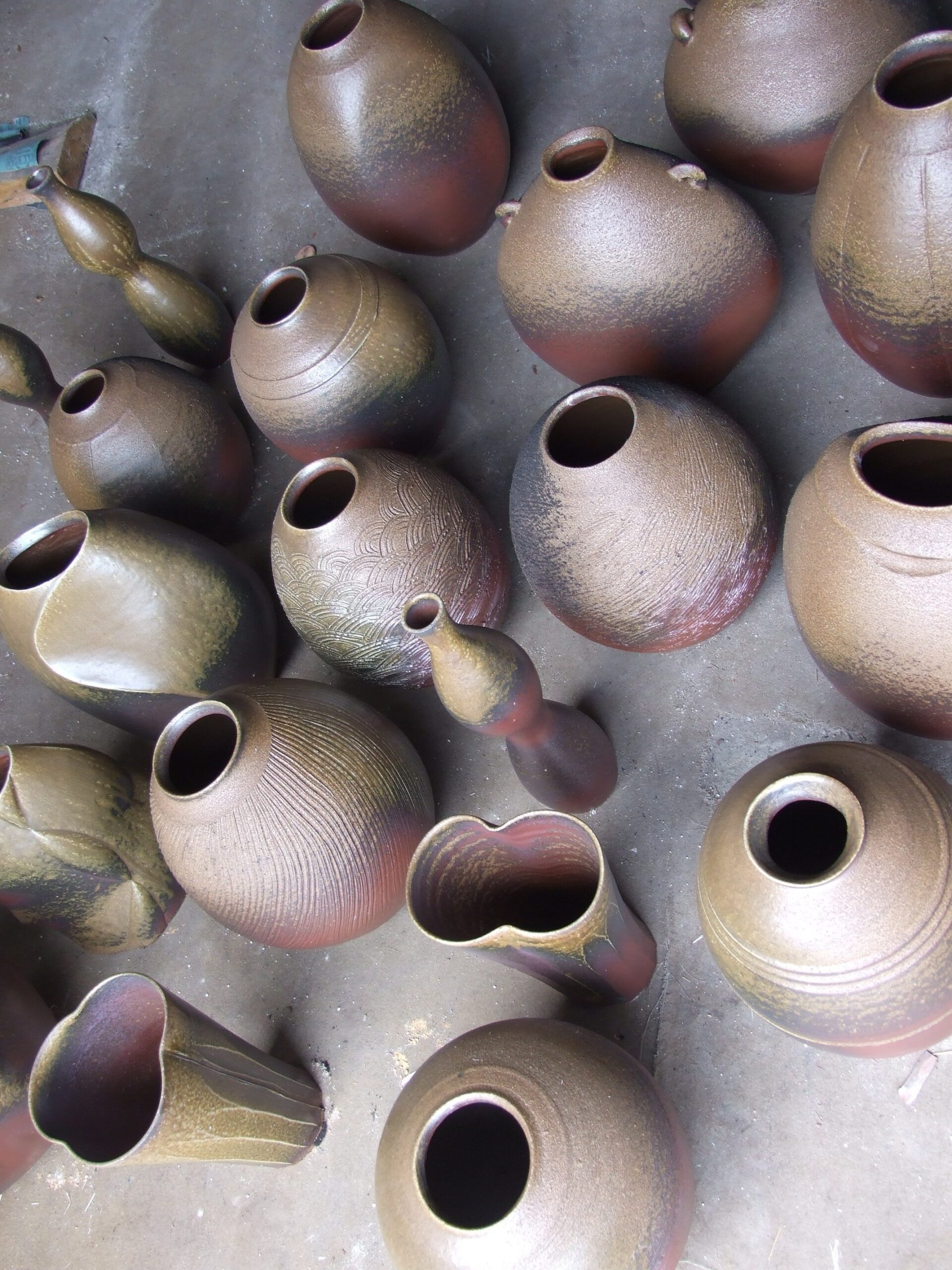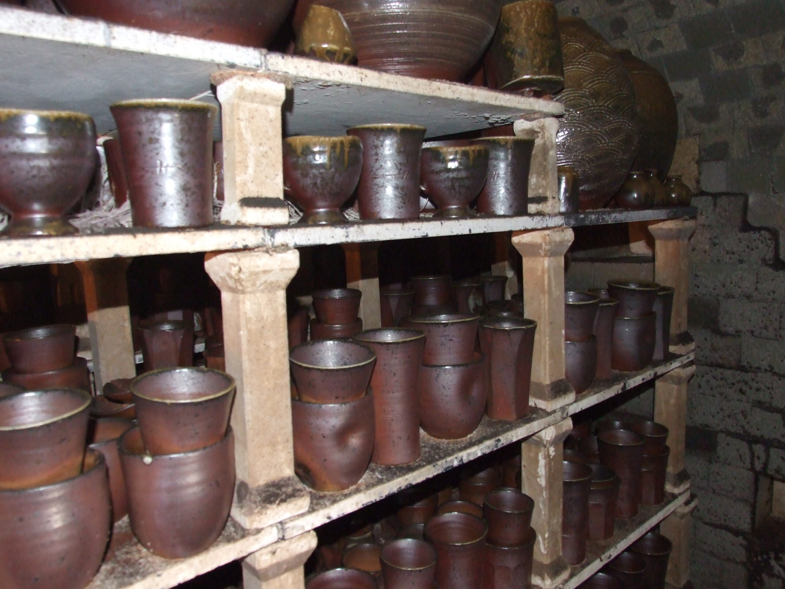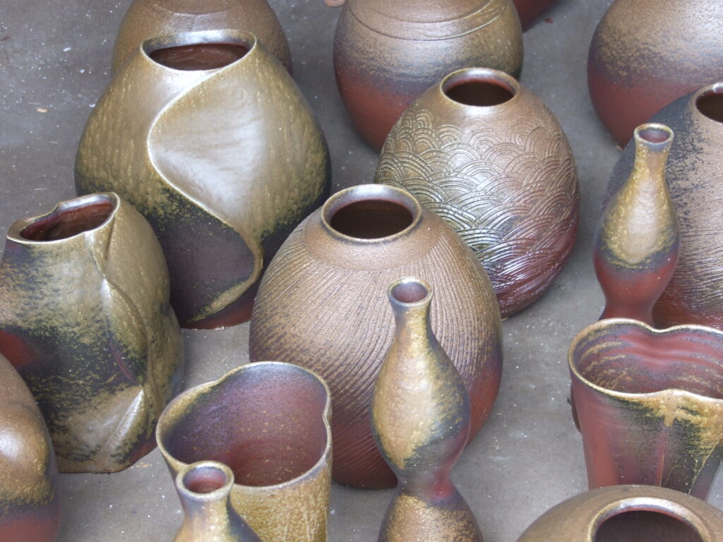 普段使いの食器から大型花器まで、お手ごろな備前焼が広いフロアに勢ぞろい!