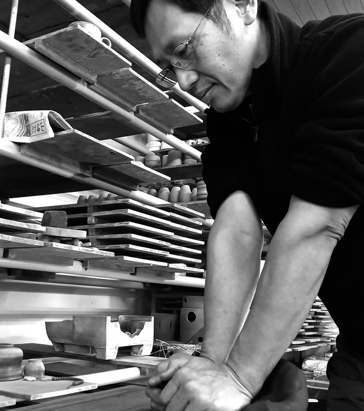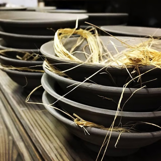 絵付けも釉薬も使わず、松の木の炎でじっくりと