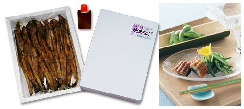 あなごは、新鮮なあなごを自家製のタレをつけ1本1本丁寧に焼きあげています。祭寿司には欠かせないひとつです。また、白焼きにし、ワサビ醤油を用いても格別です。 小さい物は天ぷらあるいは甘露煮に。うなぎよりカロリーは少ないですが栄養豊富です。